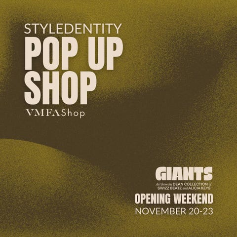 Join me at the Virginia Museum of Fine Arts during the opening weekend of Giants: Art from the Dean Collection of Swizz Beatz and Alicia Keys, for a specially curated Styledentity pop-up shop in the museum shop.